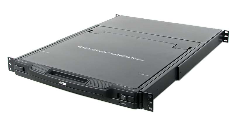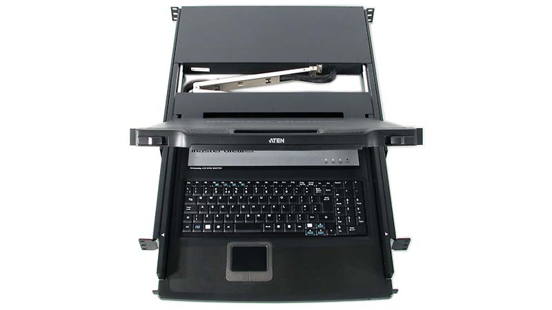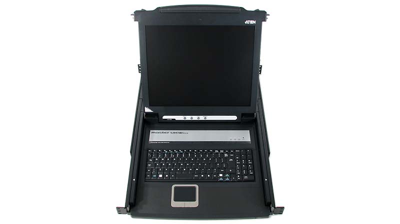 Módulo de consola para switch KVM. Inclui monitor LCD de 17", teclado completo e touchpad. Tudo integrado em apenas um módulo de 1U para bastidores de 19". |
